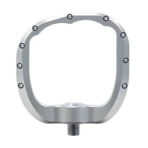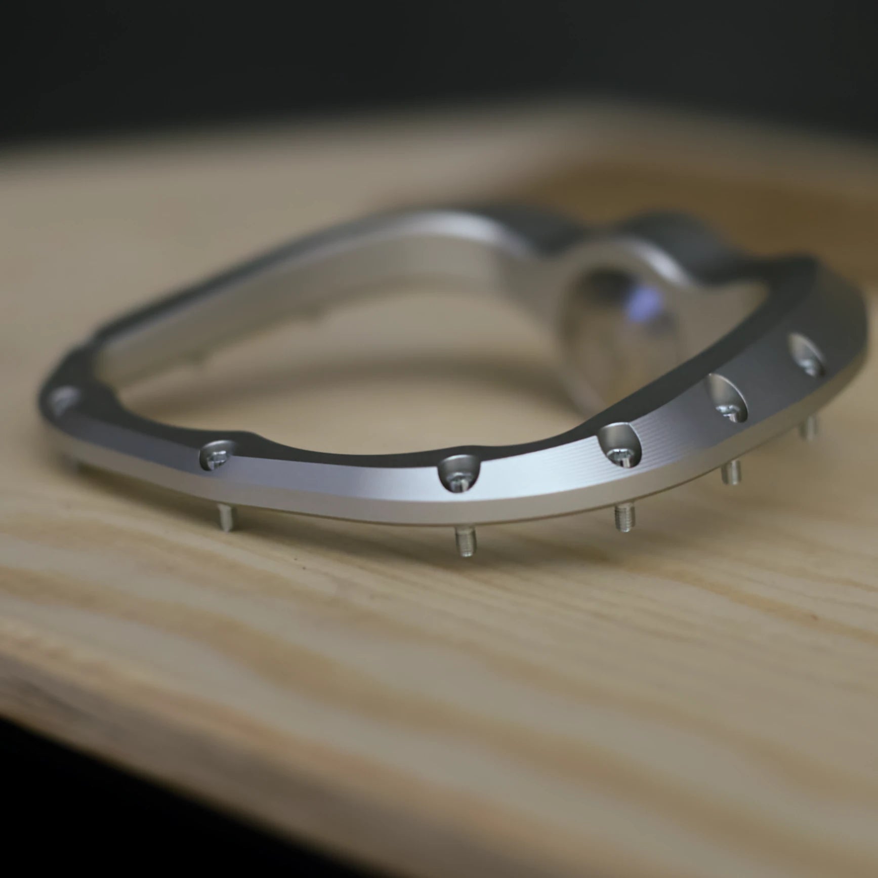 Die Basis unserer Plattform befindet sich 7 mm unterhalb der Achsmitte. Bei den meisten Pedalen liegt die Plattform dagegen ca. 6 mm über der Achsmitte. Dadurch wird der Schwerpunkt des Fahrers um ca. 13 mm abgesenkt, was für deutlich mehr Stabilität und Kontrolle sorgt. Bei plötzlichen Verzögerungen wirkt das Pedal wie ein Pendel und schwingt nach vorne. Dabei wird der Fuß des Fahrers in einer Fersen-unten-Position gehalten. Wenn du den Fuß vom Pedal nehmen musst, richten sich die Pedale selbst wieder auf.